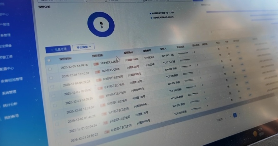 智慧守护不仅进入家庭,也覆盖社区养老场景。在新海镇怡心养老院,23个房间均已安装智能门磁与防跌倒设备。副院长黄海燕介绍,智能门磁在夜间设定时段可监测老人异常出入,防止走失;活动监测设备能及时发现老人长时间无活动等异常情况。相关技术人员通过后台管控大屏,可实时查看所有设备状态与预警信息,实现主动干预。“目前,项目已覆盖1家养老院、4个家门口服务站及4个为老服务中心,累计安装346户。”新海镇社工办工作人员汤明宇表示。