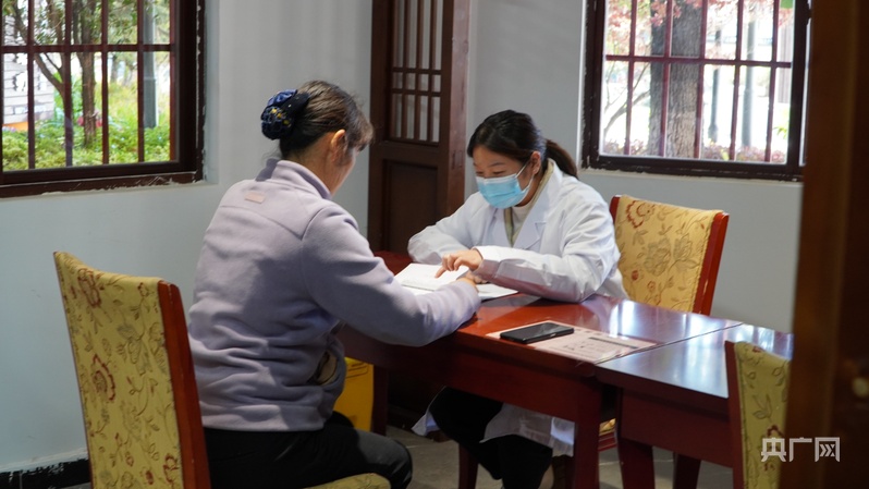 养老机构医生正在为老人解读体检报告内容(央广网记者 魏文青 摄)