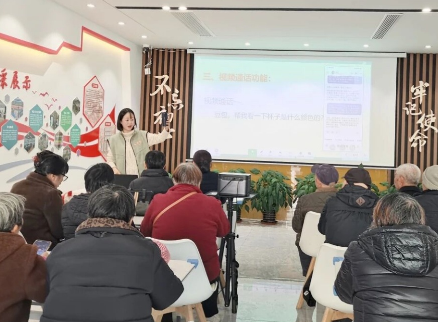 另一边,有老人正与智能机器人对坐对弈五子棋。“第一次和机器人下五子棋,特别开心,我还赢了它!原来在家里没事干,打牌也没意思,来这里既能学到知识,又能交到新朋友。”市民刘老伯说。随后的课程中,来自陈家镇成人学校的教师还现场教授老人们使用AI助手“豆包”,通过通俗易懂的讲解和悉心耐心的指导,不少老人很快就掌握了安装及使用方法。