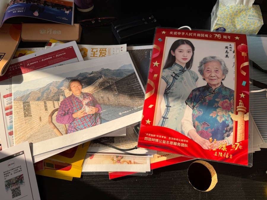 “四团阿姨”们用AI为农村老人做的照片。沈思怡 摄