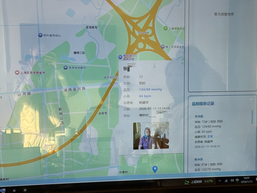 四团镇地处奉贤最东部,全镇户籍老人超过2.6万人,90岁以上老人有738名,老龄化、空心化程度高,且绝大多数都住在农村地区。不同于城市老人,农村老人居住分散,对手机网络等数字化技术的接受度和操作能力都更弱,这也让许多子女与村居干部都头疼,如何能时刻掌握他们的动向与健康状况。