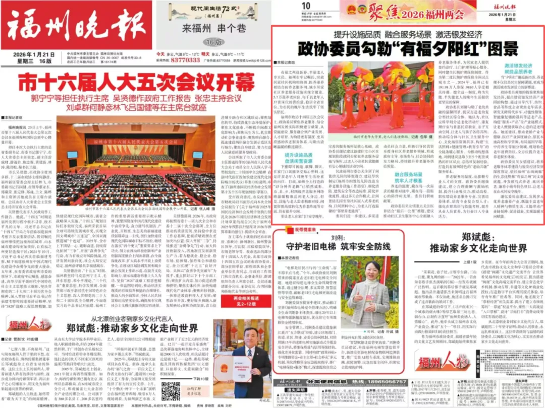 福州市政协十四届五次会议上,政协委员聚焦养老服务,结合福州发展实际积极建言献策,从设施建设、服务融合到产业发展、人才培育,为构建更有温度、更具质感的养老服务体系,勾勒出清晰温暖的推进路径。
