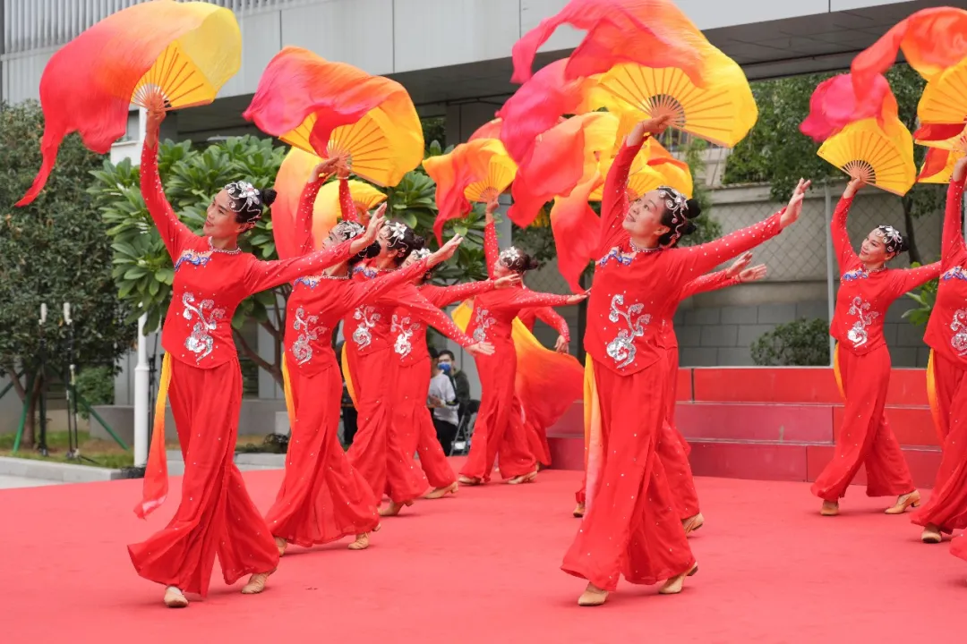 福州市老年大学里,老人们表演舞蹈