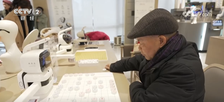智能适老玩具也格外受到老年人的欢迎。一位老人正体验与AI下棋机器人对弈,从五子棋、象棋到围棋,这类机器人不仅技术全面,还会贴心地自动匹配对手水平,成为是老年人的“全能好棋友”。